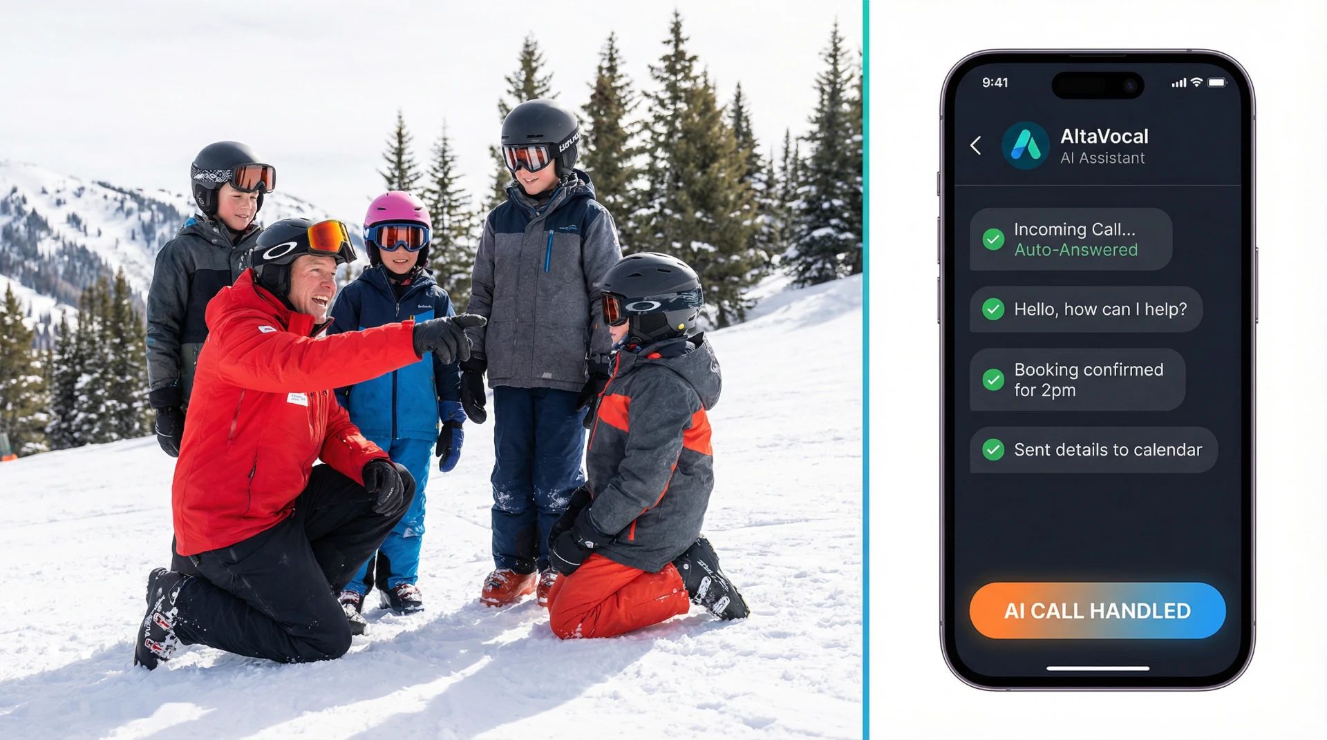 A smart AI receptionist designed specifically for ski instructors who can't answer their phones on the mountain.
